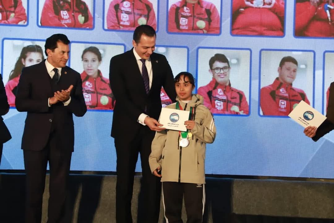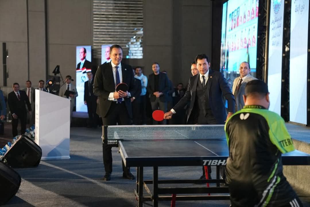 وفي لفتة إنسانية خلال الحفل، من النائب أحمد عبد الجواد نائب رئيس الحزب والأمين العام، والدكتور أشرف صبحي وزير الشباب والرياضة، بأداء فقرة تنس الطاولة مع رضا حماد أحد أبطال متحدي الإعاقة.