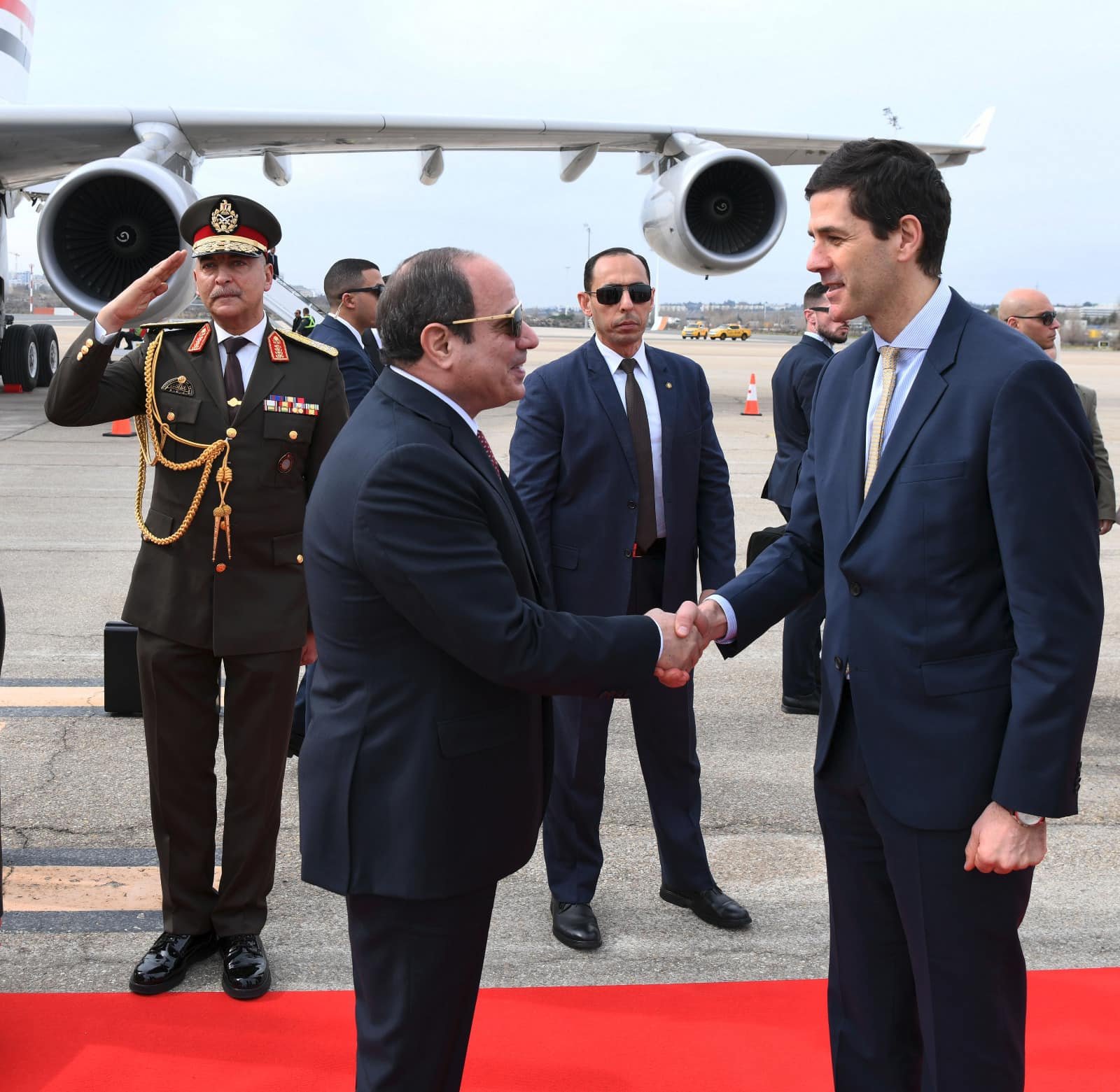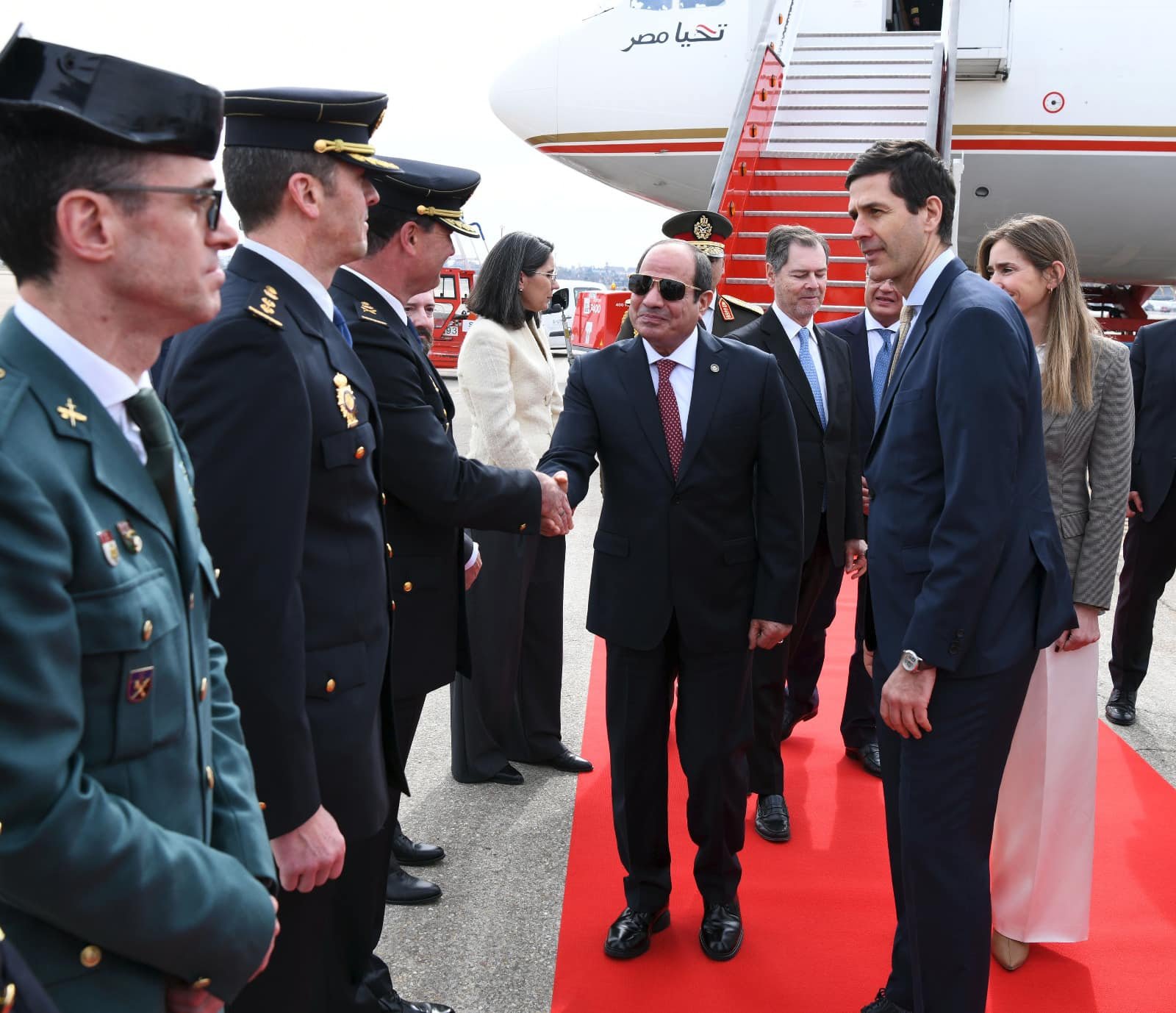 السيد الرئيس عبد الفتاح السيسي يصل بسلامة الله إلى العاصمة الأسبانية مدريد في زيارة رسمية إلى مملكة أسبانيا.