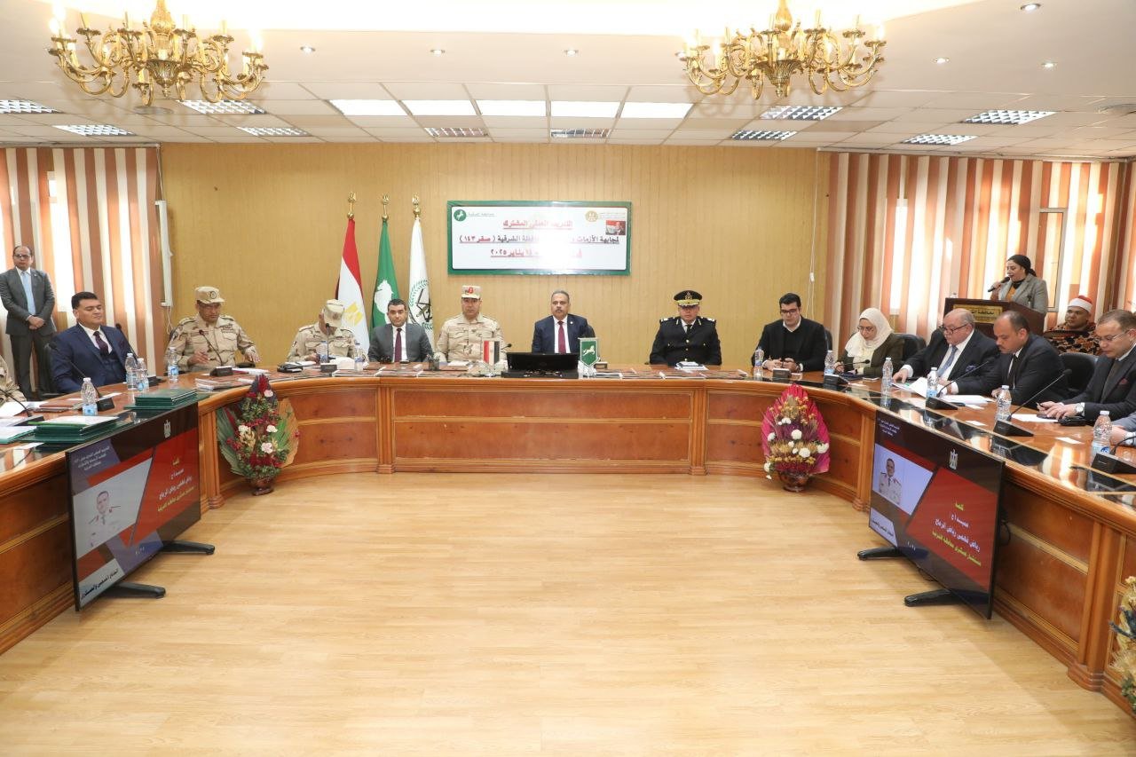 واتخاذ القرارات السليمة للتصدي للأزمات الطارئة وذلك في حضور اللواء أ.ح أسامة عبد الحميد داود قائد قوات الدفاع الشعبي والعسكري و الأستاذ الدكتور أحمد عبد المعطي والمهندسة لبني عبد العزيز نائبي المحافظ واللواء عبد الغفار الديب سكرتير عام المحافظة