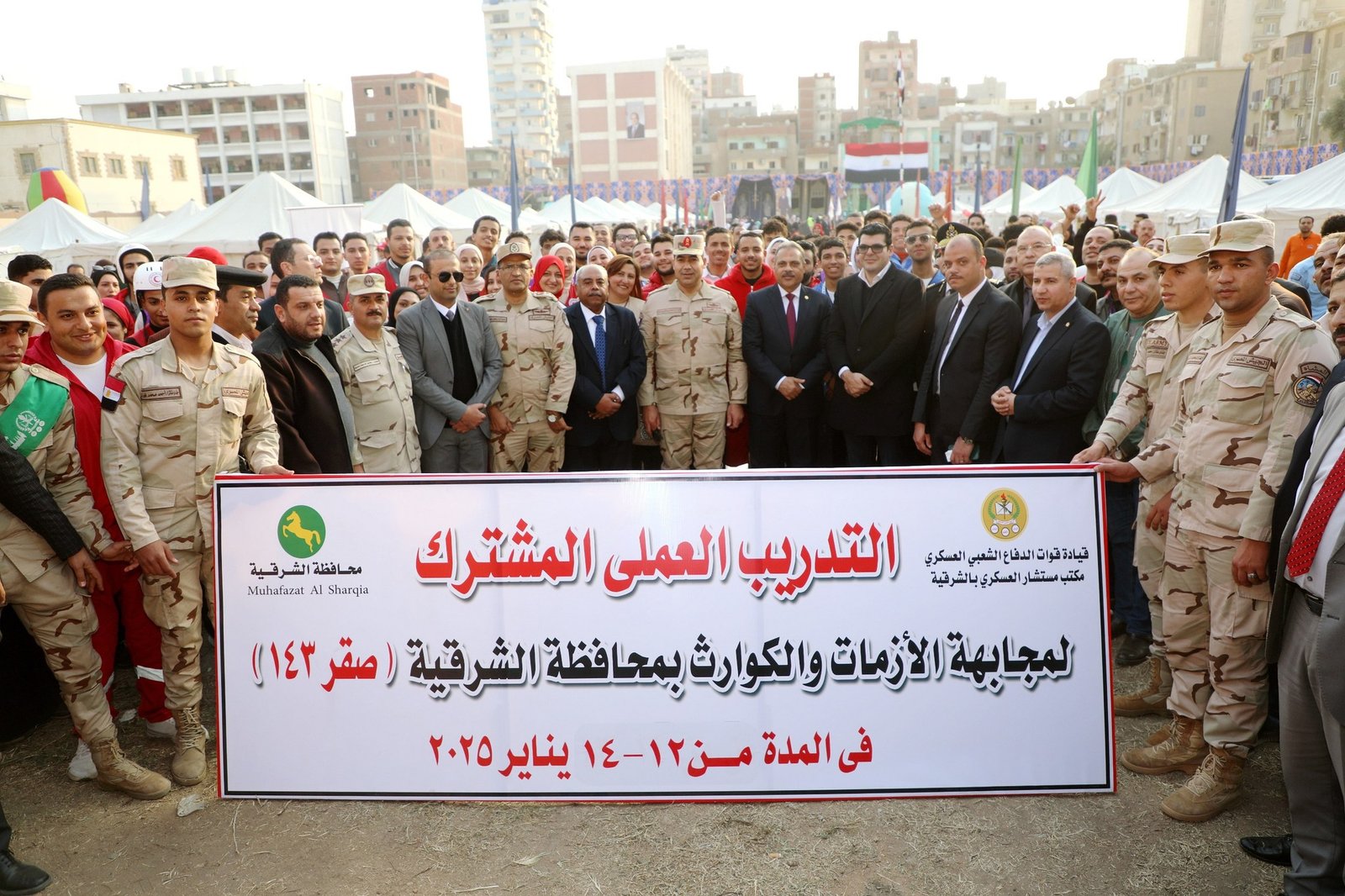 وأكد المحافظ أنه خلال الفعاليات تم إجراء محاكاة لإدارة أزمة حقيقية من داخل مركز سيطرة الشبكة الوطنية للطوارئ والسلامة العامة وتفقد اصطفاف المعدات الفنية المشاركة في التدريب العملي المشترك لمجابهة الأزمات والكوارث صقر 143 بأرض المحلج بمركز الزقازيق